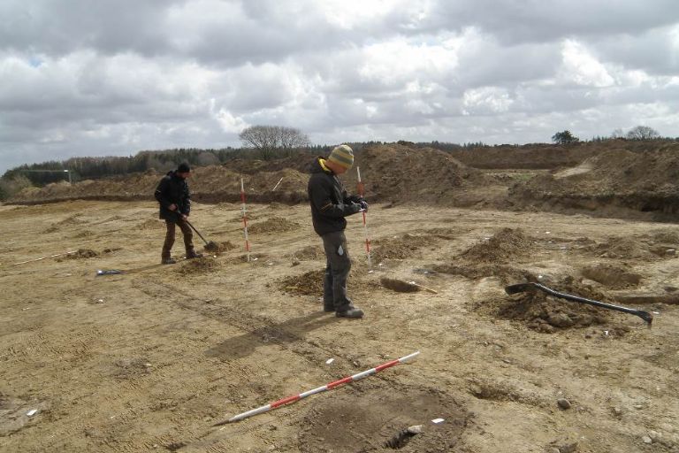 Sydøst for Funder Kirkeby finder museets arkæologer lige nu bebyggelsesspor fra den tidlige del af bronzealderen, som i fagkredse betegnes som Ældre b