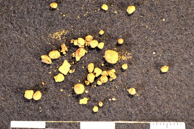 Det drejer sig igen om en slaggedynge fra jernproduktion der har efterladt sig omkring 100 ton affald. dette må repræsentere en produktion af mange to