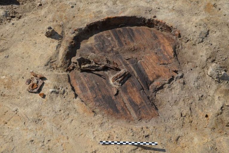 Den netop afsluttede udgravning på Skærskovhedeved resulterede i mange spændende fund. Et af disse var jordfæstegraven, som var rigt udstyret med et f