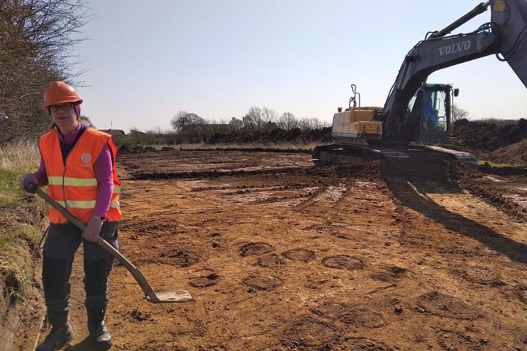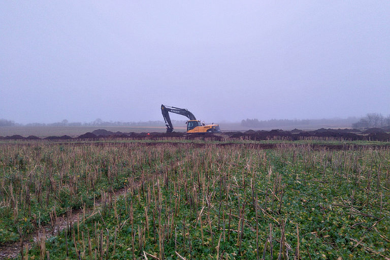 Syd for Linåvej graver vi i øjeblikket udlægsarealer omkring et kommende regnvandsbassin, og omkring motorvejen. Ved regnvandsbassinet er der t