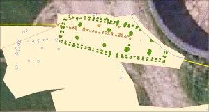 Siden sidste opslag er udgravningen afsluttet og yderligere en udgravning er foretaget i samme område, set kortet nedenfor. På kortet er huse og hegn